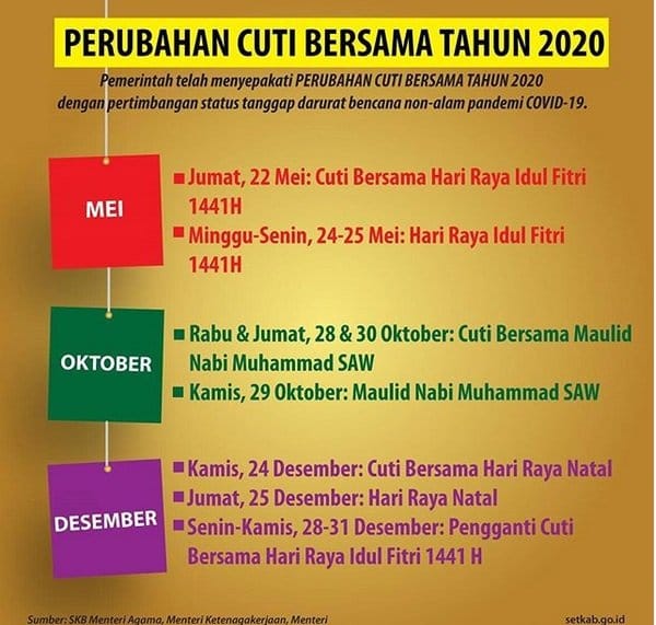 Pemerintah telah menetapkan akhir oktober 2020 sebagai cuti bersama yang bisa dinikmati seluruh masyarakat.